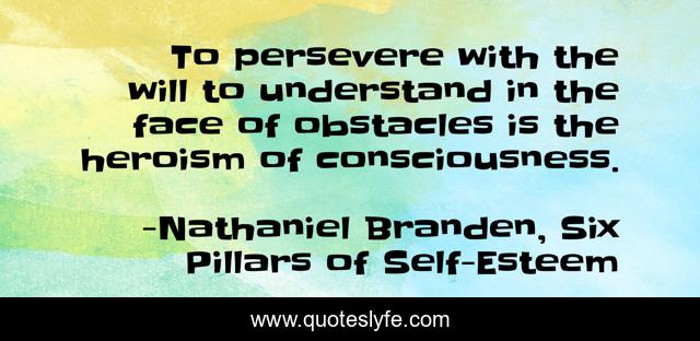 This page presents the quote "To persevere with the will to understand in the face of obstacles is the heroism of consciousness.". Author of this quote is Nathaniel Branden, Six Pillars of Self-Esteem. This quote is about perseverance, consciousness, understanding,.