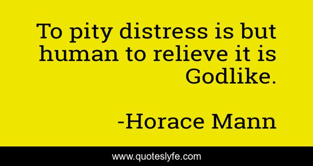 This page presents the quote "To pity distress is but human to relieve it is Godlike.". Author of this quote is Horace Mann. .