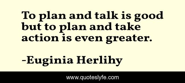 "Euginia Herlihy Quotes." Quoteslyfe.com, 2025. Fri. 05 Dec. 2025. <https://www.quoteslyfe.com/quote/To-plan-and-talk-is-good-but-99064>.