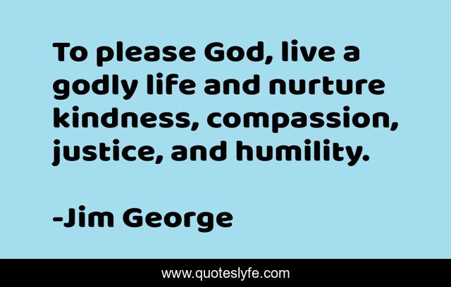 This page presents the quote "To please God, live a godly life and nurture kindness, compassion, justice, and humility.". Author of this quote is Jim George. This quote is about faith, life, christian, compassion, god, godly, please, blessed, justice,.