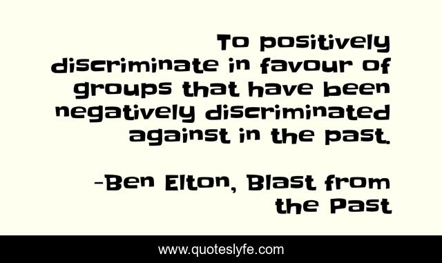 This page presents the quote "To positively discriminate in favour of groups that have been negatively discriminated against in the past.". Author of this quote is Ben Elton, Blast from the Past. This quote is about past, discrimination,.