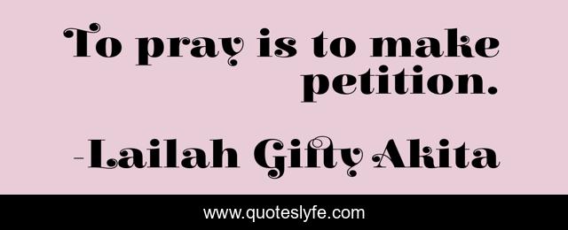 This page presents the quote "To pray is to make petition.". Author of this quote is Lailah Gifty Akita. This quote is about pray, warrior, warfare-prayers, petition, christianity,.