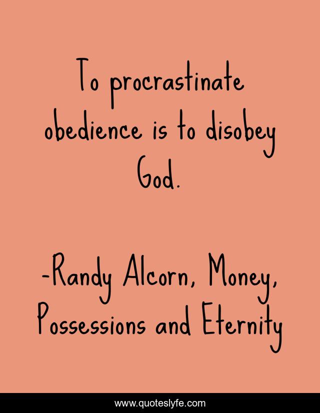 "Randy Alcorn, Money, Possessions and Eternity Quotes." Quoteslyfe.com, 2025. Mon. 08 Dec. 2025. <https://www.quoteslyfe.com/quote/To-procrastinate-obedience-is-to-disobey-God-247374>.