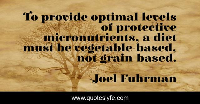 This page presents the quote "To provide optimal levels of protective micronutrients, a diet must be vegetable-based, not grain-based.". Author of this quote is Joel Fuhrman. This quote is about protective, levels,.
