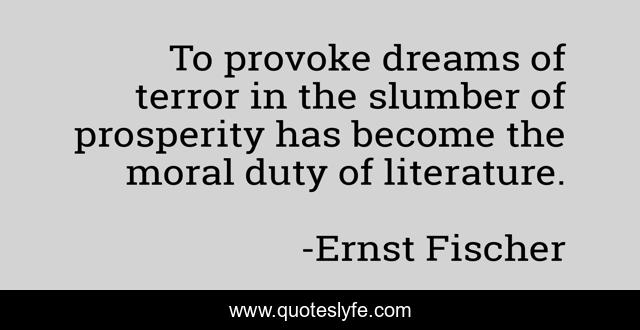 This page presents the quote "To provoke dreams of terror in the slumber of prosperity has become the moral duty of literature.". Author of this quote is Ernst Fischer. This quote is about literature, moral,.