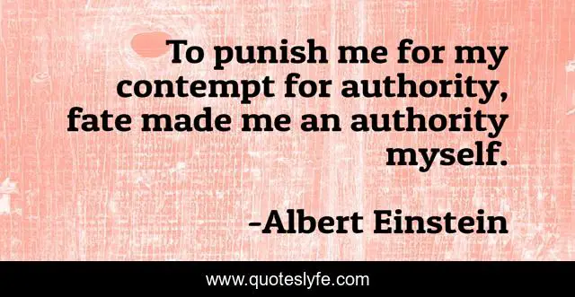 This page presents the quote "To punish me for my contempt for authority, fate made me an authority myself.". Author of this quote is Albert Einstein. .