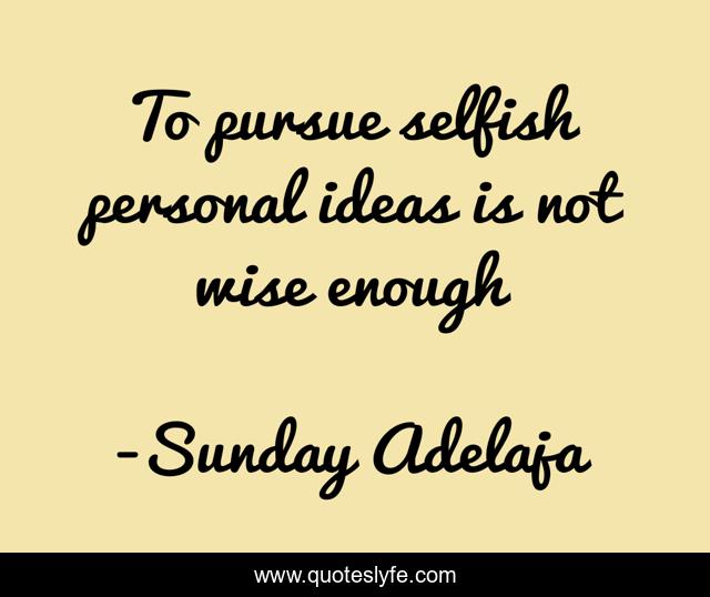 This page presents the quote "To pursue selfish personal ideas is not wise enough". Author of this quote is Sunday Adelaja. This quote is about selfish, wise, personal, ideas, pursue, enough,.