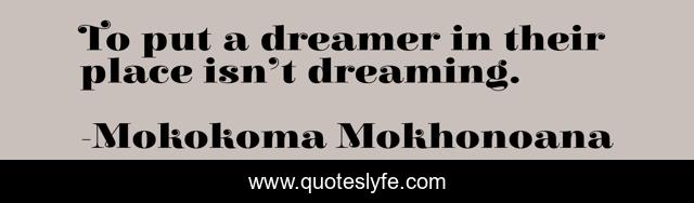 "Mokokoma Mokhonoana Quotes." Quoteslyfe.com, 2025. Mon. 08 Dec. 2025. <https://www.quoteslyfe.com/quote/To-put-a-dreamer-in-their-place-131426>.