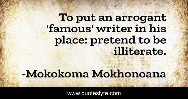 "Mokokoma Mokhonoana Quotes." Quoteslyfe.com, 2025. Fri. 05 Dec. 2025. <https://www.quoteslyfe.com/quote/To-put-an-arrogant-famous-writer-in-151336>.