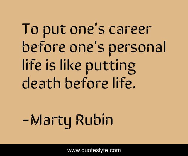 This page presents the quote "To put one's career before one's personal life is like putting death before life.". Author of this quote is Marty Rubin. This quote is about career, personal-life,.