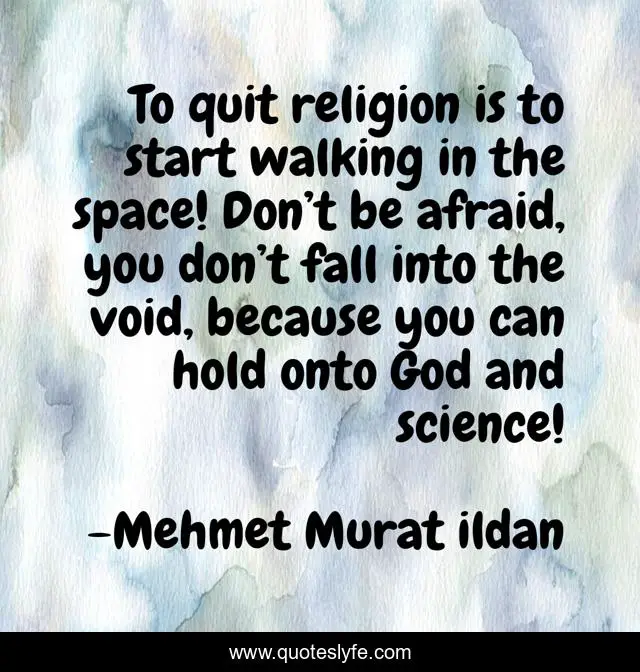 This page presents the quote "To quit religion is to start walking in the space! Don’t be afraid, you don’t fall into the void, because you can hold onto God and science!". Author of this quote is Mehmet Murat ildan. .