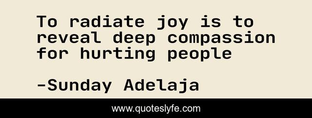 This page presents the quote "To radiate joy is to reveal deep compassion for hurting people". Author of this quote is Sunday Adelaja. This quote is about compassion, joy, radiate, deep, reveal,.