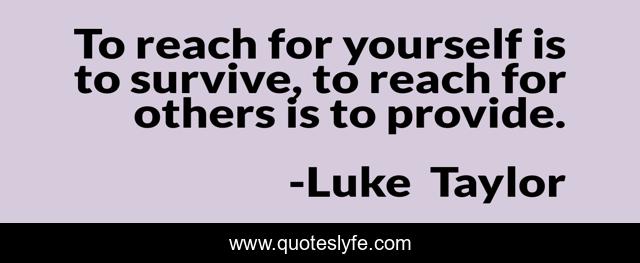 This page presents the quote "To reach for yourself is to survive, to reach for others is to provide.". Author of this quote is Luke Taylor. This quote is about prosperity, life, life-experience,.
