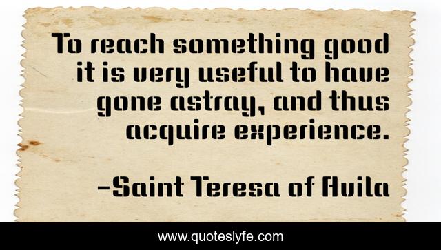 This page presents the quote "To reach something good it is very useful to have gone astray, and thus acquire experience.". Author of this quote is Saint Teresa of Avila. This quote is about gone, good, reach,.