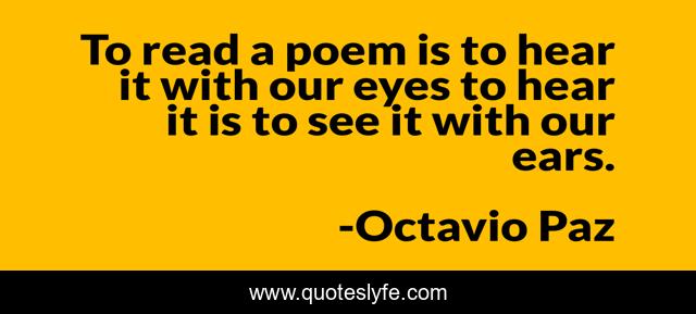 This page presents the quote "To read a poem is to hear it with our eyes to hear it is to see it with our ears.". Author of this quote is Octavio Paz. This quote is about eyes, hear, see,.