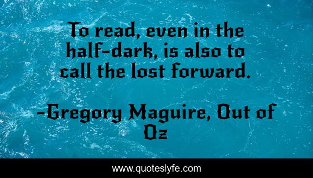 This page presents the quote "To read, even in the half-dark, is also to call the lost forward.". Author of this quote is Gregory Maguire, Out of Oz. This quote is about memories, reading,.