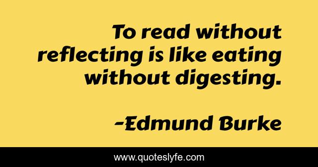This page presents the quote "To read without reflecting is like eating without digesting.". Author of this quote is Edmund Burke. This quote is about without, eating, like,.