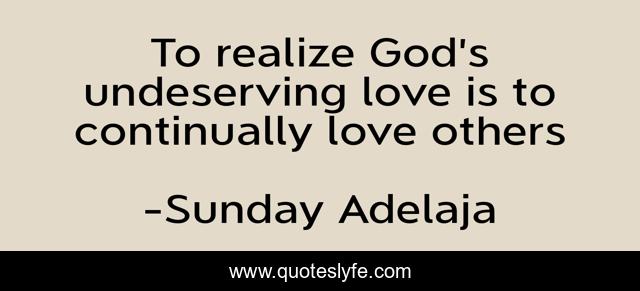 This page presents the quote "To realize God’s undeserving love is to continually love others". Author of this quote is Sunday Adelaja. This quote is about love, realize, affection, understanding,.