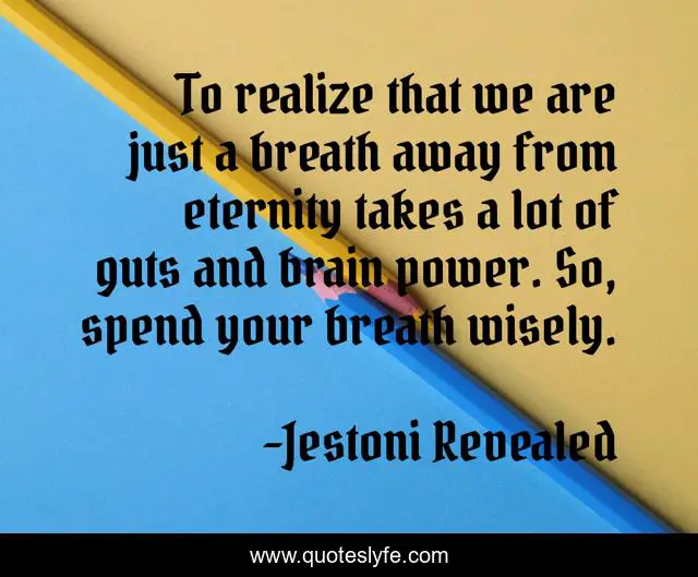 To realize that we are just a breath away from eternity takes a lot of guts and brain power. So, spend your breath wisely.