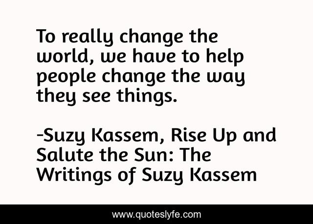 "Suzy Kassem, Rise Up and Salute the Sun: The Writings of Suzy Kassem Quotes." Quoteslyfe.com, 2025. Fri. 05 Dec. 2025. <https://www.quoteslyfe.com/quote/To-really-change-the-world-we-have-44184>.