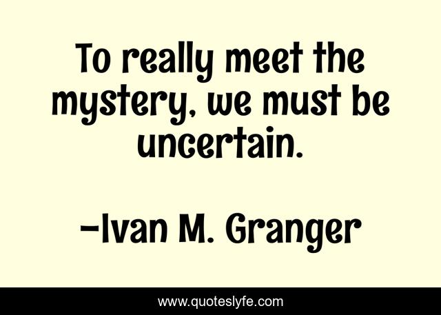 This page presents the quote "To really meet the mystery, we must be uncertain.". Author of this quote is Ivan M. Granger. .