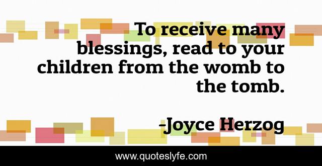 This page presents the quote "To receive many blessings, read to your children from the womb to the tomb.". Author of this quote is Joyce Herzog. This quote is about family-relationships, bonding, reading-aloud, reading,.