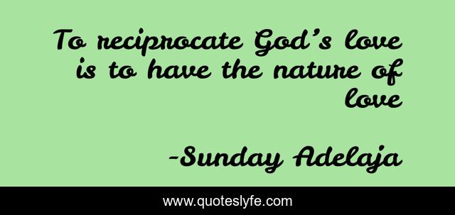 This page presents the quote "To reciprocate God’s love is to have the nature of love". Author of this quote is Sunday Adelaja. This quote is about nature-of-love, love, nature, god, god-s-love, affection,.
