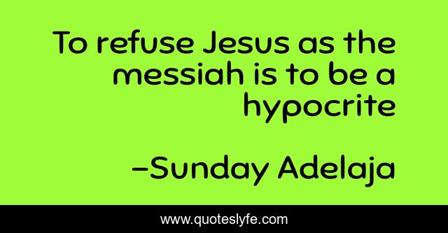 This page presents the quote "To refuse Jesus as the messiah is to be a hypocrite". Author of this quote is Sunday Adelaja. This quote is about refuse, jesus, hypocrite, messiah,.