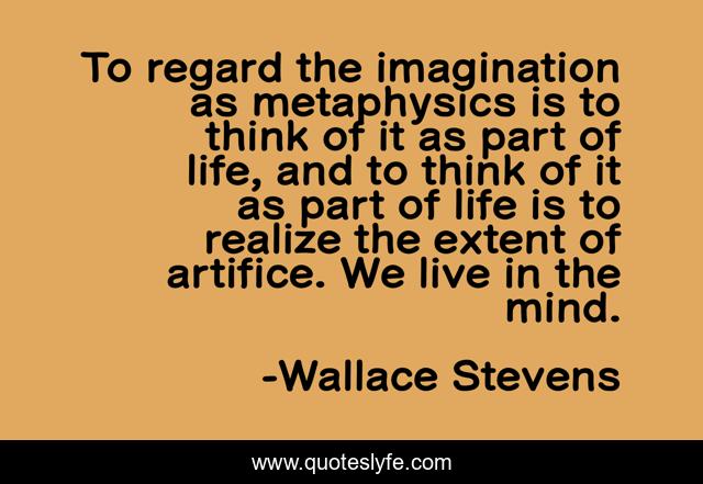 This page presents the quote "To regard the imagination as metaphysics is to think of it as part of life, and to think of it as part of life is to realize the extent of artifice. We live in the mind.". Author of this quote is Wallace Stevens. This quote is about life, mind, live,.