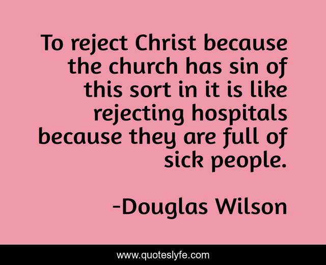 This page presents the quote "To reject Christ because the church has sin of this sort in it is like rejecting hospitals because they are full of sick people.". Author of this quote is Douglas Wilson. .