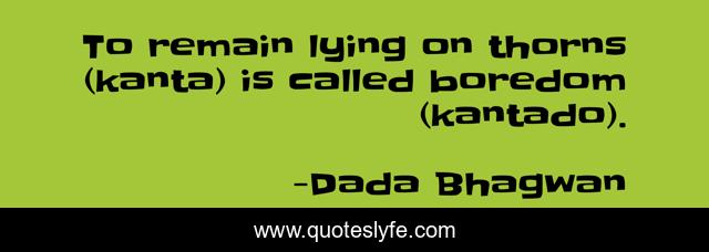 This page presents the quote "To remain lying on thorns (kanta) is called boredom (kantado).". Author of this quote is Dada Bhagwan. This quote is about spiritual, boredom, lying,.