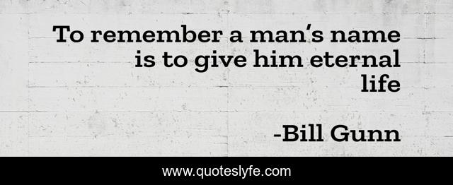 This page presents the quote "To remember a man’s name is to give him eternal life". Author of this quote is Bill Gunn. .