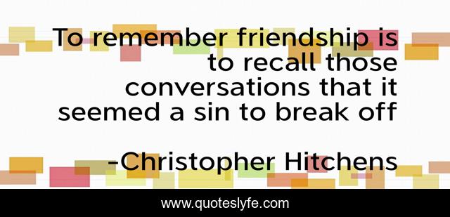 This page presents the quote "To remember friendship is to recall those conversations that it seemed a sin to break off". Author of this quote is Christopher Hitchens. .