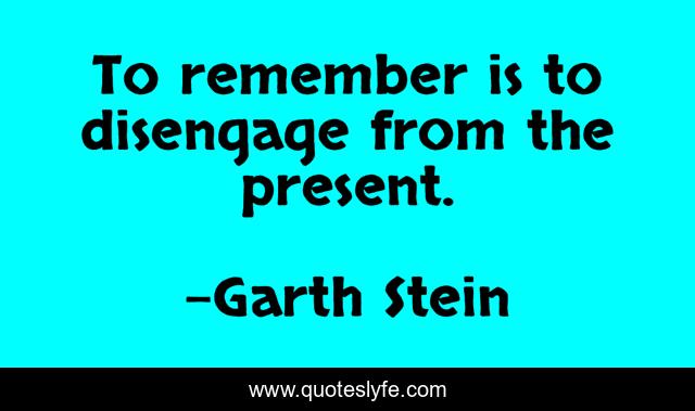 This page presents the quote "To remember is to disengage from the present.". Author of this quote is Garth Stein. This quote is about memories, remember, memory,.