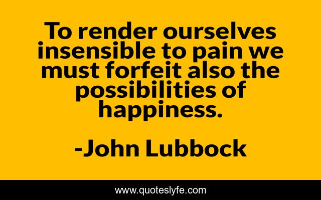 This page presents the quote "To render ourselves insensible to pain we must forfeit also the possibilities of happiness.". Author of this quote is John Lubbock. .