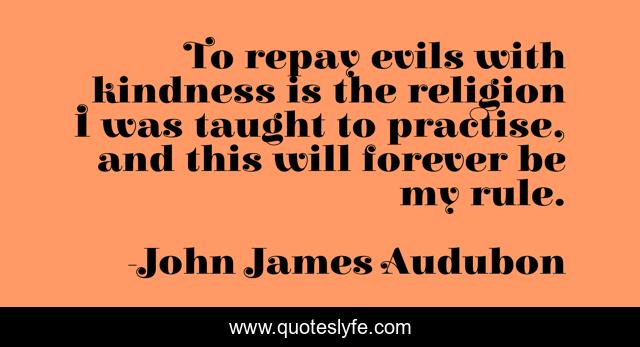 This page presents the quote "To repay evils with kindness is the religion I was taught to practise, and this will forever be my rule.". Author of this quote is John James Audubon. This quote is about forever, kindness,.