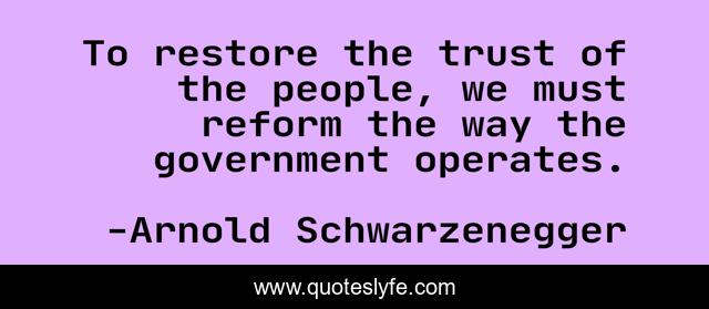 This page presents the quote "To restore the trust of the people, we must reform the way the government operates.". Author of this quote is Arnold Schwarzenegger. This quote is about government, way, people,.