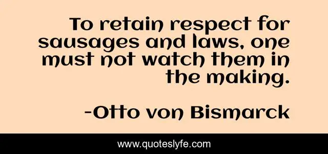 "Otto von Bismarck Quotes." Quoteslyfe.com, 2025. Mon. 08 Dec. 2025. <https://www.quoteslyfe.com/quote/To-retain-respect-for-sausages-and-laws-283771>.