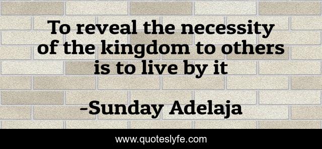 This page presents the quote "To reveal the necessity of the kingdom to others is to live by it". Author of this quote is Sunday Adelaja. This quote is about kingdom, reveal, live, necessity,.