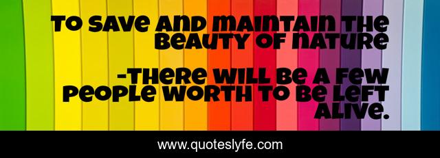 This page presents the quote "To save and maintain the beauty of nature". Author of this quote is there will be a few people worth to be left alive.. .