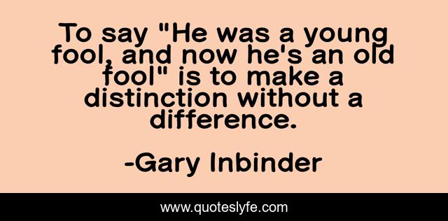 This page presents the quote "To say "He was a young fool, and now he's an old fool" is to make a distinction without a difference.". Author of this quote is Gary Inbinder. This quote is about philosophy-of-life, irony-of-life,.