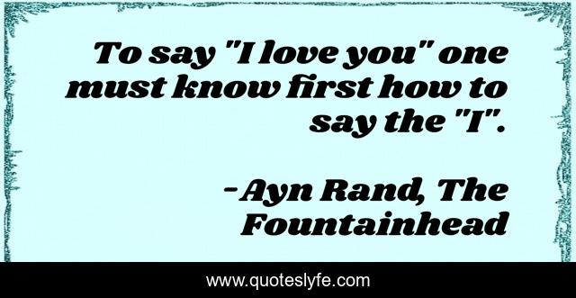 "Ayn Rand, The Fountainhead Quotes." Quoteslyfe.com, 2025. Sun. 07 Dec. 2025. <https://www.quoteslyfe.com/quote/To-say-I-love-you-one-must-160409>.