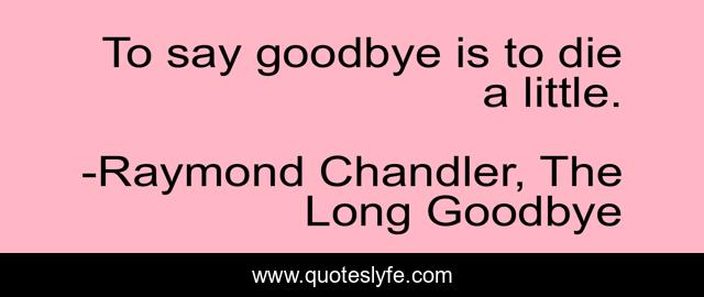 "Raymond Chandler, The Long Goodbye Quotes." Quoteslyfe.com, 2025. Mon. 08 Dec. 2025. <https://www.quoteslyfe.com/quote/To-say-goodbye-is-to-die-a-1866>.