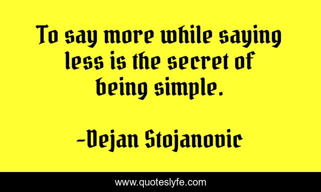 This page presents the quote "To say more while saying less is the secret of being simple.". Author of this quote is Dejan Stojanovic. This quote is about saying, literature, less, simple, dejan-stojanovic, poetry, wisdom, quotes, simplicity,.