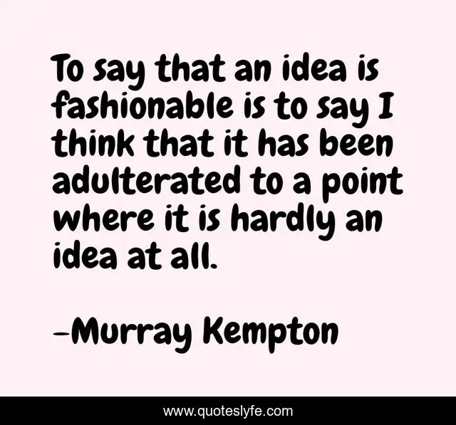 This page presents the quote "To say that an idea is fashionable is to say I think that it has been adulterated to a point where it is hardly an idea at all.". Author of this quote is Murray Kempton. .