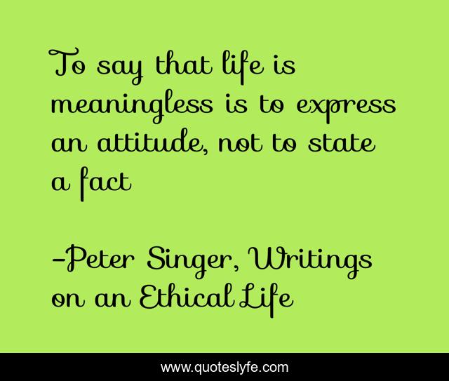 This page presents the quote "To say that life is meaningless is to express an attitude, not to state a fact". Author of this quote is Peter Singer, Writings on an Ethical Life. This quote is about philosophy, nihilism, meaning, purpose, ethics, moral-philosophy,.