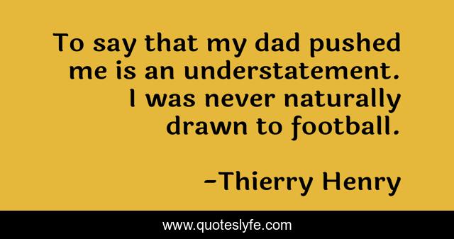 This page presents the quote "To say that my dad pushed me is an understatement. I was never naturally drawn to football.". Author of this quote is Thierry Henry. This quote is about me, football,.