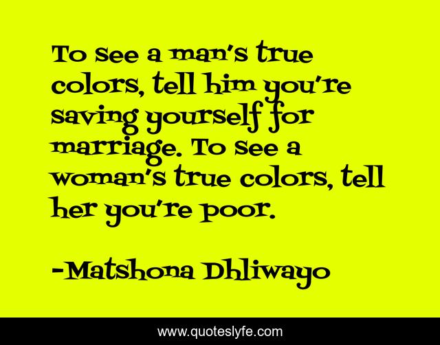 "Matshona Dhliwayo Quotes." Quoteslyfe.com, 2025. Mon. 08 Dec. 2025. <https://www.quoteslyfe.com/quote/To-see-a-man-s-true-colors-98127>.