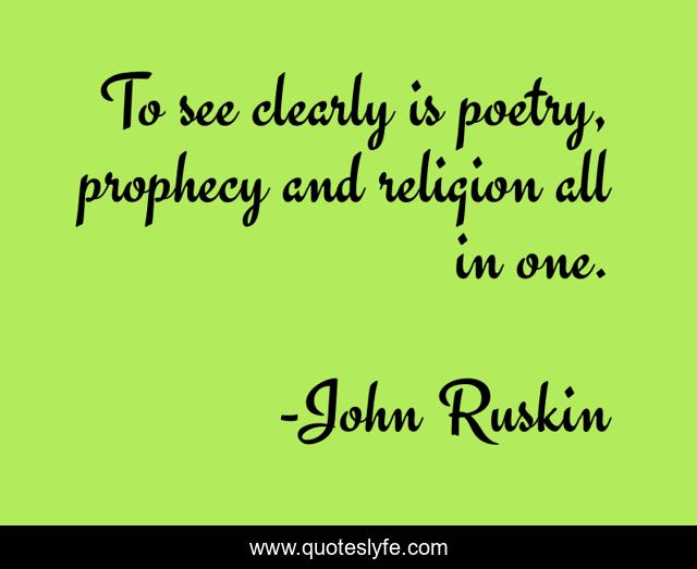 This page presents the quote "To see clearly is poetry, prophecy and religion all in one.". Author of this quote is John Ruskin. This quote is about see, prophecy, poetry,.