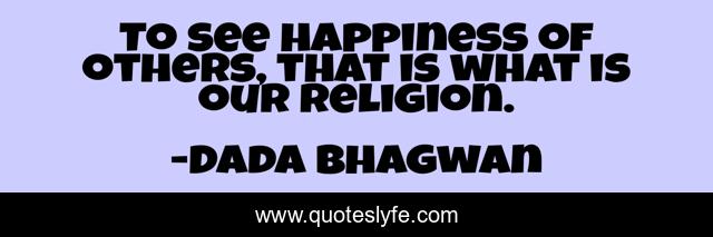 This page presents the quote "To see happiness of others, that is what is our religion.". Author of this quote is Dada Bhagwan. This quote is about spiritual, be-happy, religion, see-others-happy, happiness, happy,.